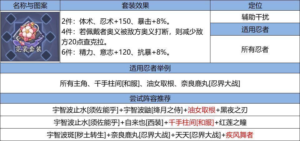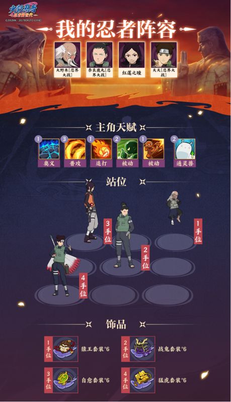Tip:上图中尝试阵容推荐里标红的为携带对应新饰品的忍者,仅供参考。