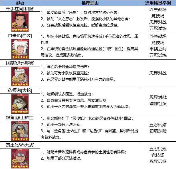 a、以上远征忍者的推荐理由仅供参考,不分先后,需要根据不同的环境和自己所拥有的忍者进行合理选择搭配;