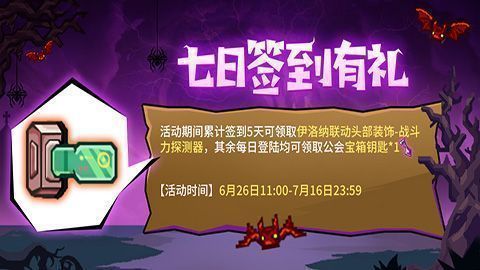 伊尔瓦大陆的冒险家们带来了丰富珍宝,和宝藏猎人们一同分享!活动期间累计签到5天可领取伊洛纳联动头部装饰【探测器】,其余每日登陆均可领取公会宝箱钥匙*1。快快集齐宝藏,携手踏上冒险之旅吧~