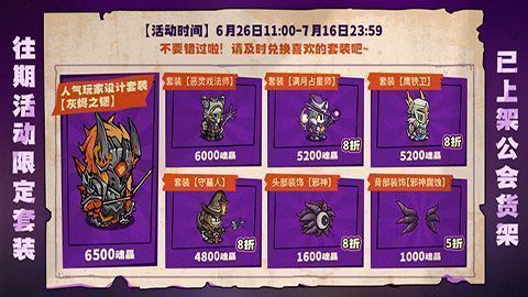 往期活动限定套装已上架公会货架,不要错过啦!请及时兑换喜欢的套装吧~