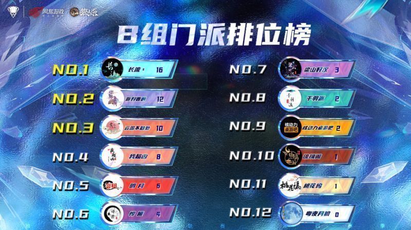 B组的门派排位榜中,长流门派目前以16分排名第1,你好香啊门派目前以12分位居第2,竞争仍然十分激烈。在此前的对局中,你好香啊在前四周的比赛当中积累了不小的积分优势,而长流己方选手拿下多次全场最佳,让我们共同期待下他们接下来的表现。