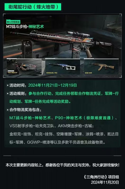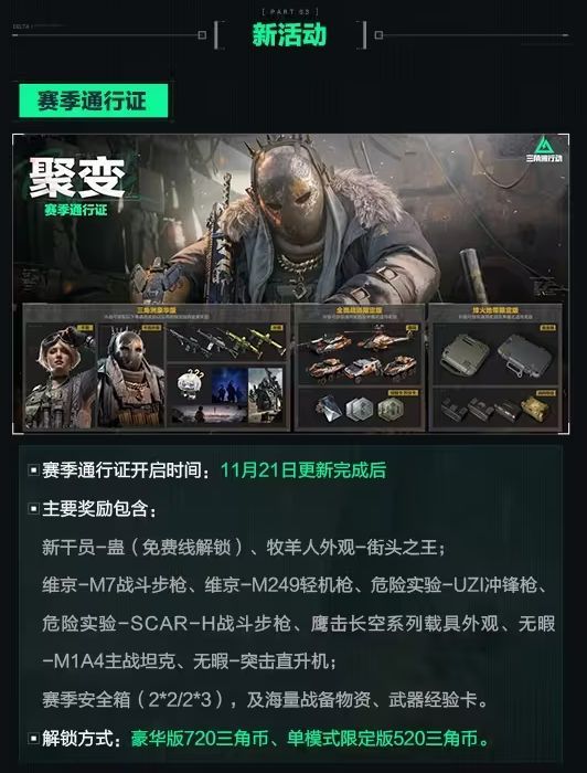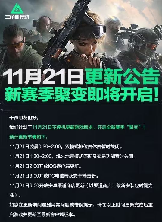 今日(11月20日),国产多人FPS《三角洲行动》官方宣布新赛季“聚变”明日上线,新干员佐娅、新地图堑壕战、巴克什新区巴别塔、新模式合作行动衔尾蛇和海量更新优化明日上线!