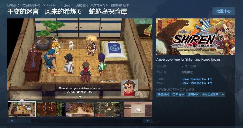 《千变的迷宫风来的希炼6 蛇蜷岛探险谭》Steam商店页面正式上线,游戏支持中文,发售日期待定。该作由Spike Chunsoft开发和发行,是系列的第六部作品,此前已于2024年1月登陆了Switch。
