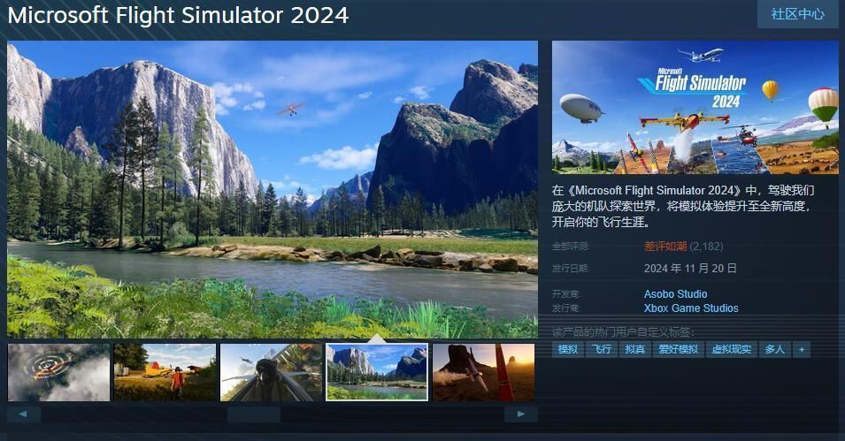 今日(11月20日),模拟游戏《微软飞行模拟2024》Steam正式发售,锁国区,本体美区售价69.99美元,数字豪华版售价99.99美元,截止到发稿前,游戏现已收到2182个玩家评价,好评率14%,综合评价“差评如潮”,玩家给差评的主要原因该作需要排队时间过长且排队容易死机。