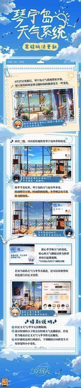 6月27日更新后,[琴宁岛天气系统]功能常驻开放,在主界面[家]和二楼均可体验。