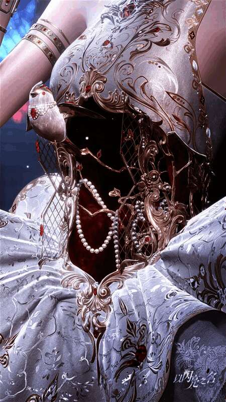 鞋子的设计已经如此用心了,套装的设计概念和主题更是一目了然。要将中国传统德化白瓷与泉州提线木偶戏的设计元素融合在一套服装上,还是有很大挑战性的,除了整体的用色和陶瓷的质感之外,此次的傀儡之章新版本的主推套装还增加了许多更有趣的设计。比如为了凸显腰部的线条,在参考前期发条之心套装镂空腹部的设计之外,这一次官方给这个镂空的设计加入了浓墨重彩的一笔。正如在版本宣传片中看到的那样,一只点缀着各种宝石和水晶的金属小鸟,仿佛为这个镂空设计注入了灵魂。更惊喜的地方在于,镂空双开门鸟笼打开的时候,居住在其中的小鸟便会飞奔而出,与角色紧紧相随并进行专属的亲密互动。
