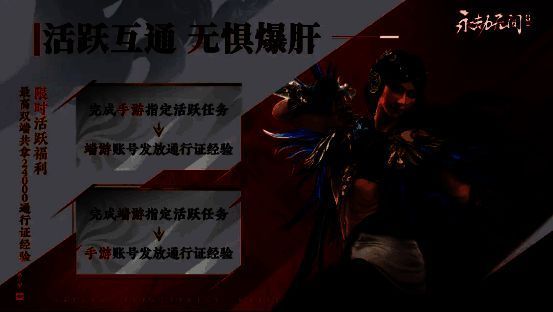 公测首月,24工作室会在游戏外开启活跃互通活动,完成绑定后,你在端手任意一端完成指定活跃任务,另一端可获得通行证经验,最高可享双端24000点的通行证经验!