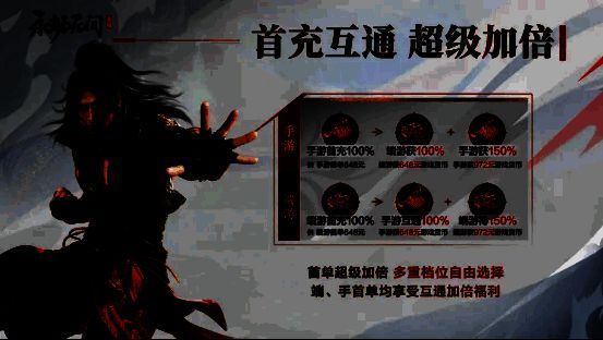 活动期间,在端手任意端完成首次充值,即可在双端获得同等游戏货币,充值端还会额外赠送50%,也就是充1份钱,拿2.5倍游戏货币!并且还设置了多档首充互通返利金额供玩家选择