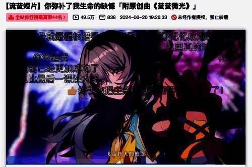 其中两首原创曲《萤萤微光》和《飞萤燃夜》更是广受好评,被许多玩家调侃为是“给官方上压力”的作品。