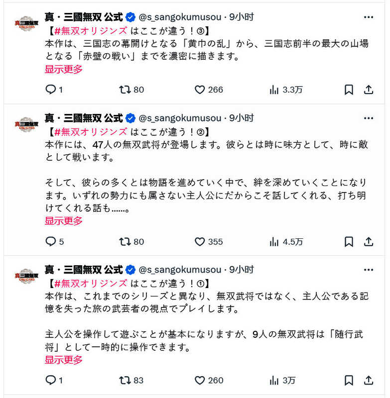 今日,《真三国无双》官推发布了系列最新作《真三国无双:起源》和系列其他作品的“与众不同”之处,简单介绍了本作的特色所在。