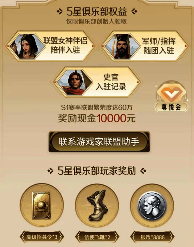 真正既玩游戏又能赚钱,更有专属定制伴侣&军师辅佐。完成活动要求在游戏不删档开启后即可领取高级招募令、金币、技能经验、心悦专属主城皮肤(心悦会员)等专属好礼,S1赛季结束联盟繁荣度达60万更可获得10000元现金奖励!马上加入《世界启元》俱乐部,提升自己俱乐部势力值,获得星级俱乐部奖励!
