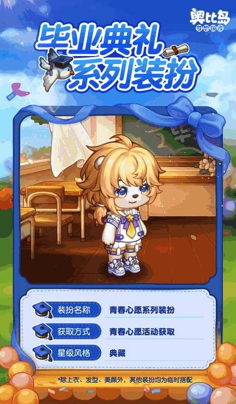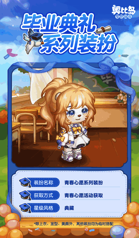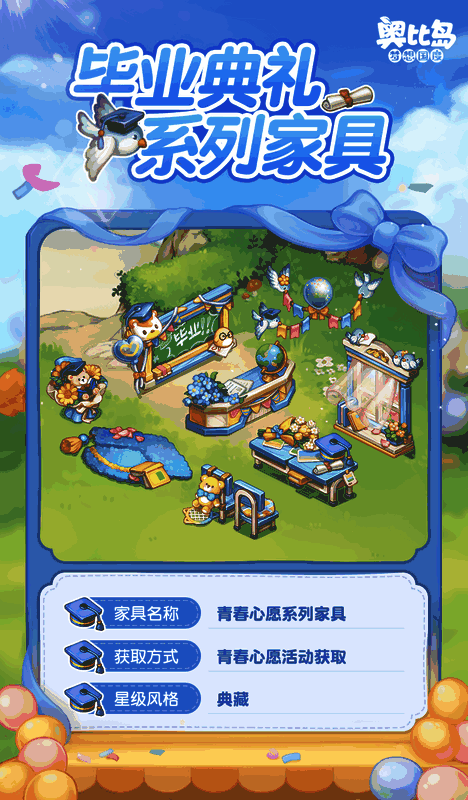奥比岛手游「毕业典礼」活动已开启,现在下载奥比岛手游,许下「青春心愿」,获取充满青春活力的限定装扮吧!还有各种满载着快乐和回忆的校园纪念品主题时装、家具等你解锁,还有丰厚奖励等你领取!