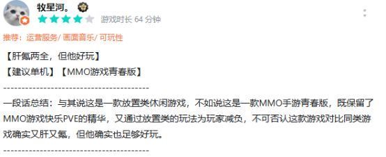 游玩过麦芬的玩家们也纷纷贡献出自己的好评,从玩家们对于的好评中我们就可以看出,轻松休闲正是《出发吧麦芬》的特色所在。简单的玩法策略使得任何玩家都能轻易上手,通过简单的地图探索获取经验提升等级,然后提升个人装备和自定义技能配置让玩家们变强。而试炼团队副本又给玩家带来了一定的挑战性,在副本中需要团队里的队员们各司其职,通过良好的配合合作才能顺利通关。要是遇到打不过的地方,《出发吧麦芬》的放置类玩法还可以在玩家有效的给玩家们减负。对于佛系养老玩家们来说,《出发吧麦芬》是一款可以在闲暇时间慢慢细品的好游戏。