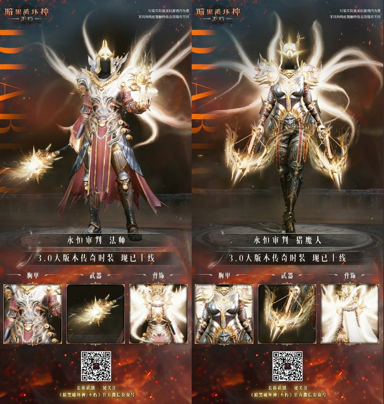 始祖力量,正义审判!全身闪耀着圣洁的光芒,伸展的天使之翼神圣威严。《暗黑破坏神:不朽》两周年传奇时装【永恒审判】现已上线,7月13日2:59前参与限时探索活动即有机会将其收入囊中。