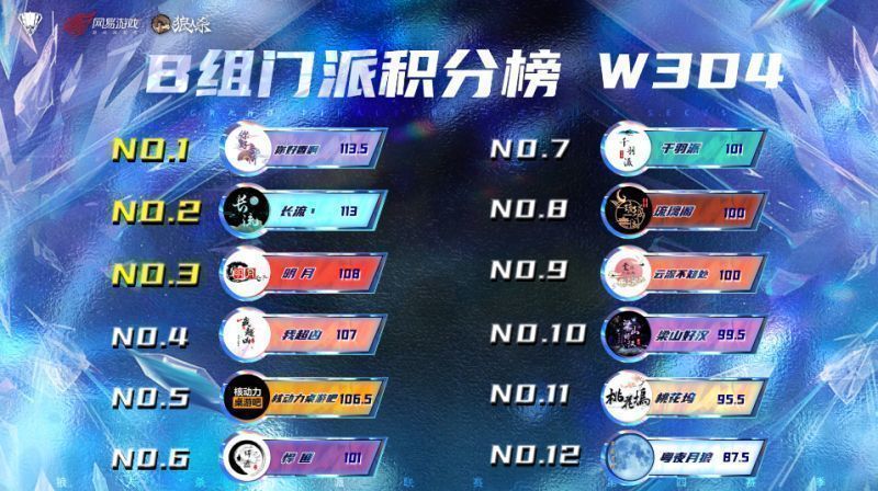 B组的积分榜中,你好香啊门派以113.5分排名第一,在前两周的分组中,你好香啊同样是位居第一,第三周可谓是持续走高,可以说是优势极大;长流门派在己方选手拿下多次全场最佳的情况下,也有着不小的积分优势,让我们共同期待下他们接下来的表现。