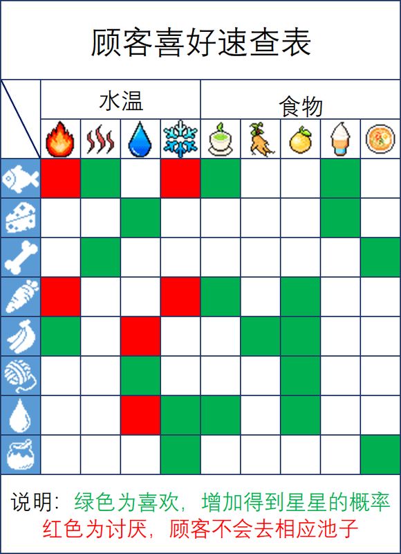 星星:如果满足温度喜好有 0.1 概率获得星星,如果满足食物喜好同样有 0.1 概率获得星星,二者分开计算。传单概率翻倍。
