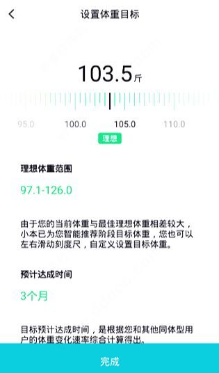 2、体重列表、柱形图、趋势线、百分比圆环等多种方式为您展示减肥进度,支持目标完成时间预测