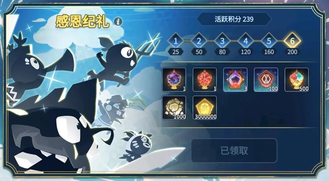 过往的活跃化作感恩纪礼回到你身边,感谢探索者一路以来在超进化大陆的活跃!活动期间,探索者可根据同一登录账号下最为活跃角色的活跃积分,获得相应档位的感恩纪礼,同一登录账号下仅可选择一个角色领取,最高可获得「奇迹怪兽茧」、可自选红色品质元核的「红色元核匣」、「百炼起源盘」等丰厚奖励。