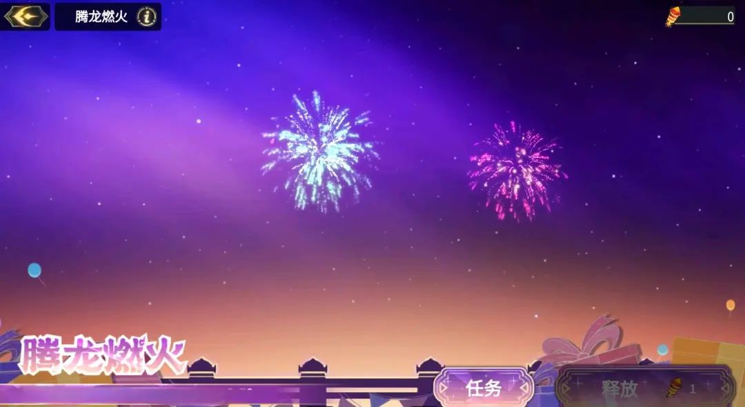 让超进化大陆的夜空更加绚烂!活动期间,完成任务即可获得「燃火」,释放燃火可一次性消耗当前所拥有的燃火放出烟花并获得相应的奖励。