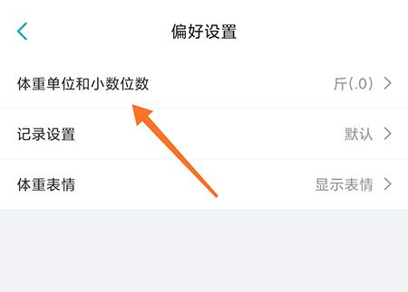 2、点进入偏好设置页面之后点击体重单位和小数位置;