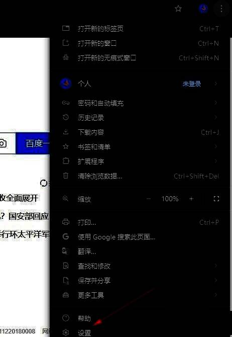2、接着在下方会弹出一个选项框,需要点击列表中的“设置”。