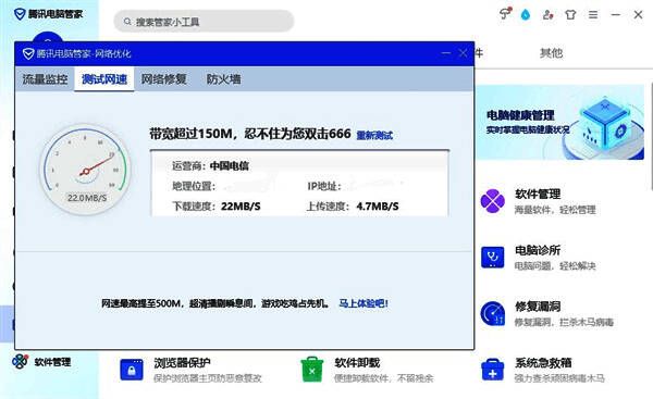 腾讯电脑管家不仅是一款好用的系统防护的工具,同时还可以帮助我们测速宽带。这里为大家带来关于测速宽带的详细教程,想了解的小伙伴快一起来看看吧!
