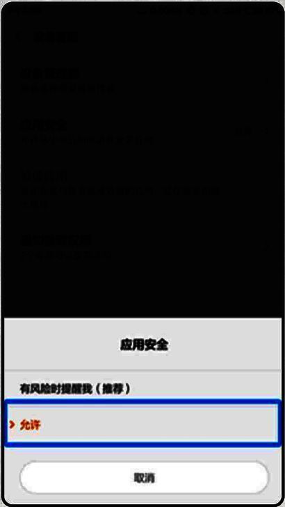 小米手机的用户如果提前将手机设置中“应用安全”的选项调整为“允许”,在安装时就不会弹出提示。