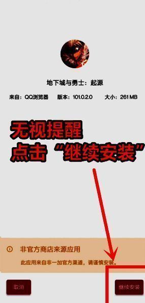 OPPO手机在安装时只有风险提示,不会出现拦截等情况,无视风险提醒,点击右下角的“继续安装”即可,等待安装包解压完成即可解决预下载的安装问题。