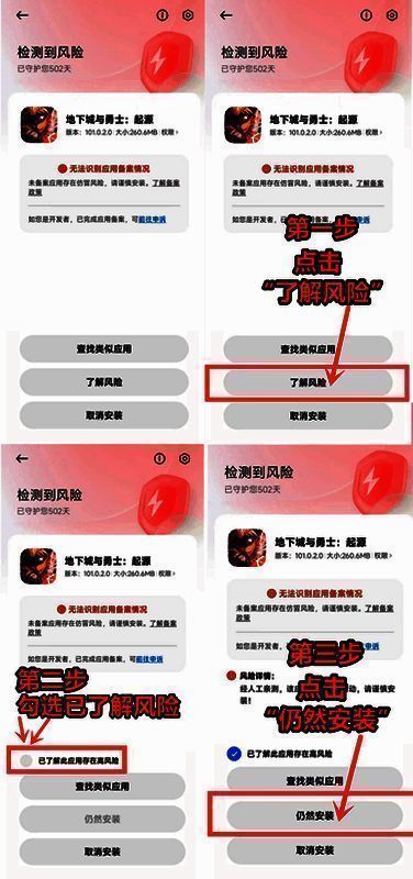 要说最近最大的热点新闻,莫过于5月21日DNF手游上线了,官方为了满足大家的需求,也为正式开服做好准备,提前一天开放预下载和预创角,并且从官网&助手下载游戏并注册会有2张+10装备强化券。好不容易熬到0点的玩家发现,下载好的DNF手游安装包被手机弹出了高风险的提示,且不是个例,针对此情况,我找了一些朋友,对多款手机的拦截模式进行了实测,并整理出一份详尽的DNF手游安装教程大全,方便各个类型手机的玩家完成安装。