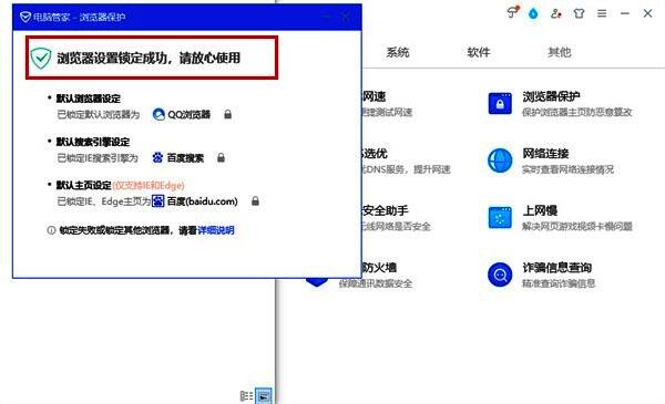 5、锁定成功后,窗户会提示【浏览器设置锁定成功,请放心使用】,这时候浏览器锁定完成了。