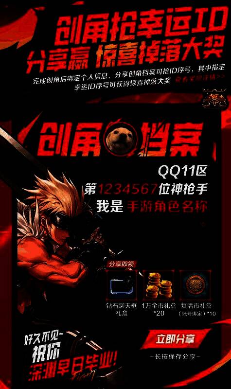 将自己的创角档案分享给好友,还可以获得专属钻石聊天框礼盒等奖励。
