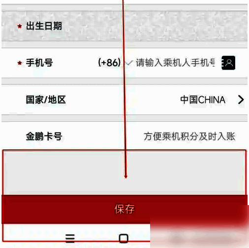 在跳转的新界面中输入姓名、手机号等信息后,点击“保存”,即可完成添加乘机人的操作