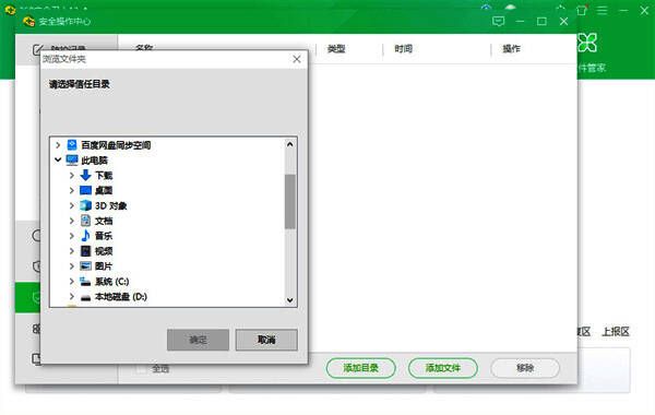 5、打开的页面中选择自己想要信任的目录,添加后该目录下的所有文件都会信任。
