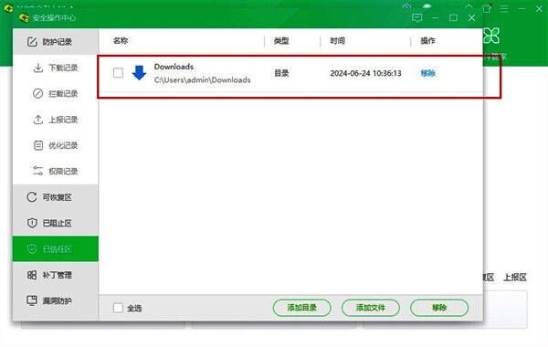 7、添加完成后就可以在信任区中看到添加的资源了,下次使用就不会被拦截了。