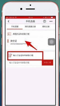 再点击【身份证】来获取行程,或在下方输入订座证件号来获取行程;