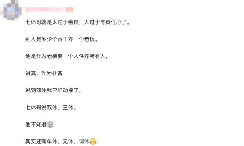 由于这种“七休日”制度太过美妙,所以大家不仅不太愿意把他称为反派,反倒是将其言论奉为了“打工人圣经”,在社区引发了广泛的反响。