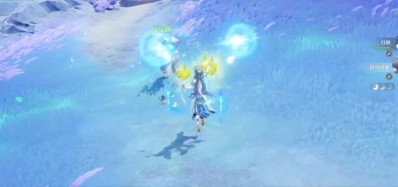 根据消耗数量,每个草露还能获取1层“月咏”,长按使用元素战技,可通过该方式使用3个草露;在元素战技或其他招式攻击命中,敌方草元素和水元素抗性会降低。在拥有“月咏”时使用元素爆发,或在使用后15秒内获取月咏,会将其使用掉,并根据层数,每层能获得6层”苍色祷歌”。