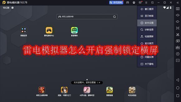 雷电模拟器是一款功能强大的模拟器工具,我们在使用软件的时候,可以直接设置强制锁定横屏,便于用户们使用,方便操作。这里带来关于开启强制锁定横屏的详细教程介绍,快一起来看看吧!