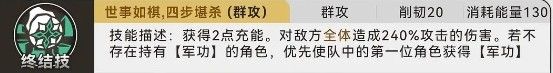 技能描述:获得2点充能。对敌方全体造成240%攻击的伤害。