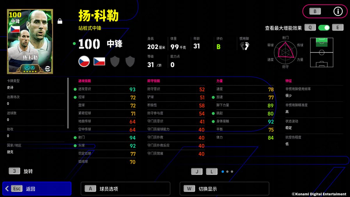 他是来自捷克的巨塔,更是令后卫胆寒的空中霸主!2.02米的扬·科勒跃起时如泰山压顶,头槌似战斧劈下,轰开所有铜墙铁壁!而这位捷克巨人不仅是空中一霸,他的脚下同样细腻,他能用强壮的体格轻松倚住对手并为前插的队友送出秒传!