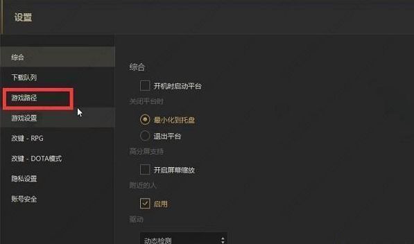 3、然后找到右侧中的"游戏路径",根据个人需求对其进行选择设置即可。