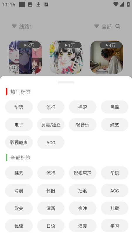 6、最后还可以通过热门标签、音乐风格快速筛选音乐。