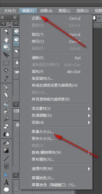 1、双击打开软件,点击上方菜单栏中的"编辑",接着点击下方选项列表中的"图像大小"。
