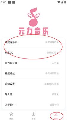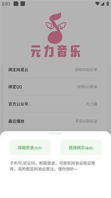 元力音乐怎么导入歌单,打开软件进入【我的】,选择绑定网易云或QQ音乐歌单,有邮箱登录和链接绑定两种方式,这里为大家演示的时链接绑定,将个人主页的链接复制粘贴下来并点击【确定】即可。