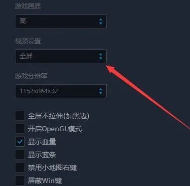 3、然后点击选项框的上下按钮,最后在给出的列表中选择"全屏"即可解决问题。
