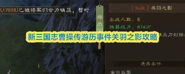 《新三国志曹操传》游历事件中,“关羽之影”挑战需要巧妙应对。这个是有点难,需要赵云和貂蝉。主要是关羽是真暴击,暴击率几乎100%,下面是新三国志曹操传游历事件关羽之影攻略,助你快速击败幻影,获取丰厚奖励!