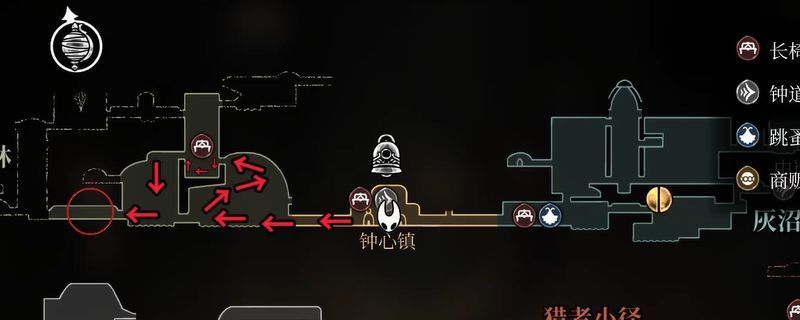 《空洞骑士:丝之歌》中的甲木林测绘师也就是地图师是游戏里很重要的特殊NPC,从他这里玩家可以买到很多有用的东西,而他的位置也比较独特,我们从钟心镇的椅子出发,向左走,来到甲木材第一个场景后,向左走,走上方,绕右上,再绕左上。