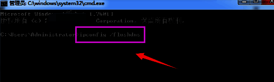 3、再接着输入"ipconfig/flushdns"命令,回车执行。