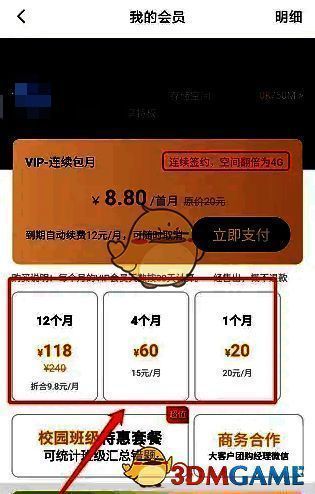 3、进入我的会员界面,选择会员套餐,点击【立即支付】。