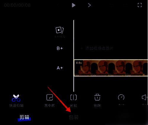 在视频的编辑页点击【包装】。